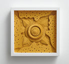 Velliquette redefines the unassuming nature of paper by constructing objects that convey strength, intent, and durability, but which also require conscious observation and care. They are at once abstract layers and shapes made from colored paper, and also structures that from one moment to the next suggest fortress-like constructions, tiered mandalas, or complex mechanical gears. Cut exclusively and assembled by hand, Velliquette’s works can take up to 500 hours to complete.